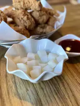 This is with bones. Boneless is +2,000W. Golden fried chicken with a crispy texture and soft meat with plenty of gravy. The sweet and spicy BBQ sauce is exquisitely mixed in for an appetizing taste.