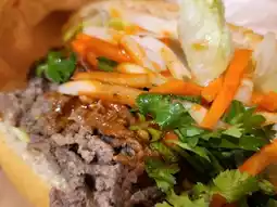 As I browsed through the food options, the Banh Mi sandwich I ordered was served in a paper bag. If you can't eat the Banh Mi immediately, you can heat it in an air fryer at 180 degrees for 2 minutes to enjoy its crispy and chewy texture. The sandwich is generously filled with beef bulgogi, various vegetables, and plenty of cilantro.