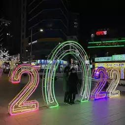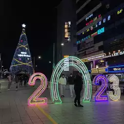 Haeundae Beach Street, Busan's representative tourist attraction! From Haeundae Station on the subway to Haeundae Beach, you can see various works that brighten the street with beautiful lights. Every winter, you can enjoy Haeundae's night more beautiful than during the day! It's great to be able to take pretty pictures in Haeundae, where you can see the sights of sending off 2022 and welcoming the new year of 2023!
