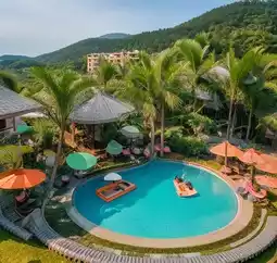 Guanlan Lake Haikou Five Continents Theme Mineral Hot Spring Park is a highly renowned hot spring resort in Haikou, surrounded by greenery, with an elegant environment. It contains architectural facilities of different styles from the five continents, where you can experience volcanic rock mineral hot springs with various functions, and it also has a uniquely designed hydrotherapy center. Walking in the scenic area, you can see a combination of Chinese and Western classic architectural styles, such as Hakka enclosed houses, castles, and European-style landscape gardens. Along the bamboo 'Dragon Back Corridor', you can shuttle through the hot spring areas of different styles of the five continents, which can be described as changing scenery with every step.