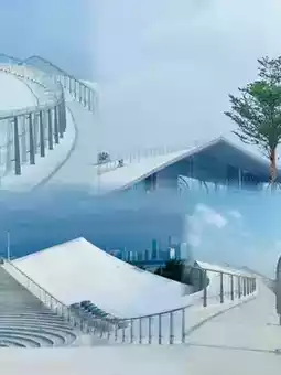 The overall architecture is a wave-like circular shape, the landscape and architecture are integrated, pure and complete, like a coastal hill, dynamic and elegant; also like sea waves, beautiful and romantic. The undulating roof seamlessly connects the city and the sea, forming a "Sky Mountain".