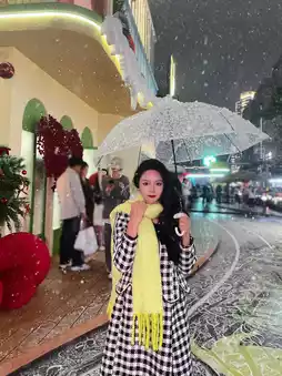 1⃣️ Snow Party ❄️: Snow starts at 7 pm, three times a day, each time for more than ten minutes, to take photos of the snow atmosphere, you must bring a transparent umbrella ☔️, it looks good, and it won't get all over your face...