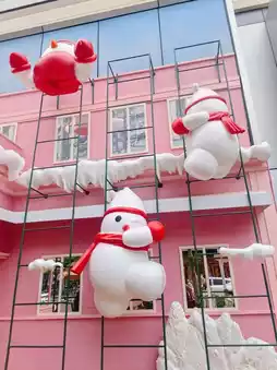 1. Giant adorable snowmen, snow-covered rooftops, gift boxes, and bows create a strong Christmas atmosphere. 😉😉