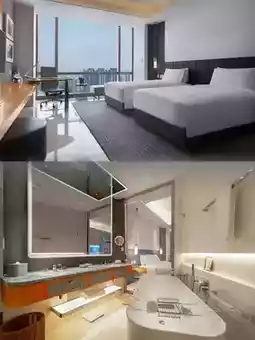 4⃣ Comfortable Rooms: The guest rooms are fully equipped with high-quality bedding, furniture, and advanced smart devices such as smart TVs and high-speed Wi-Fi. The room layout is well-designed, with distinct resting and working areas, providing a comfortable environment for both business and leisure travelers.