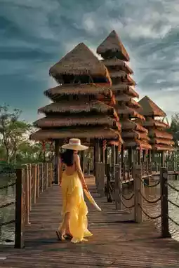 The village's lakeside boardwalk is a great place for a leisurely stroll. With clear waters and lush greenery, it's perfect for taking photos and relaxing.