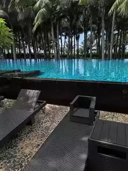 A low-density villa complex is integrated into the tropical garden, and the coconut corridor boardwalk winds through the blue swimming pool and the starry sky lawn. A giant rattan artwork of the Li ethnic group is hung on the lobby dome, and ocean ripples are carved on the volcanic rock walls. Each frame is a contemporary art display of "coconut breeze and sea charm."