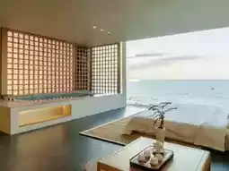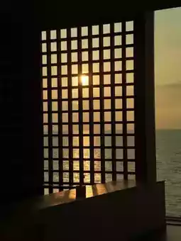 Parallel view of the sea, floor-to-ceiling windows, staying in bed in the evening, when the sun gradually sets, the last ray of afterglow shines on the screen window, this sea is filled with a strong poetic feeling