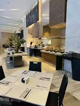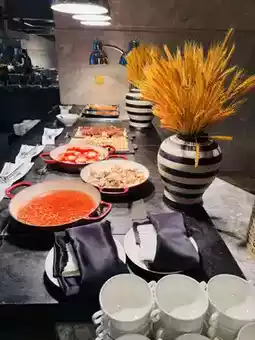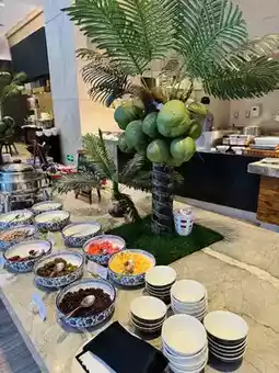 The executive lounge is located on the 18th floor. It is spacious and has a wide view and nice scenery. But it is currently temporarily arranged in the lobby bar. The afternoon tea and happy hour products are good, combining Chinese and Western food, and both meat and vegetables, with good quality. Breakfast is served in the all-Japanese restaurant on the second floor. The decoration is nice, the tables are widely spaced, and there is no feeling of crowding. The dining tables are set up in different parts of the restaurant for easy access to food. The dishes are of moderate variety and taste good, and you can eat your fill without any problems. I really like the homemade refreshing drink, and there are also freshly squeezed juices, watermelon juice and cucumber and pear juice. My favorite is the homemade coconut milk zingy cool drink, which is refreshing and delicious.
