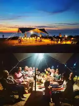Just outside the door is the sea, camping by the sea for a drink [beer] and at night you can have a romantic fireworks