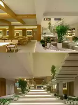 Restaurant leisure public area, fireplace tea room machine viewing platform and other areas can take pictures.