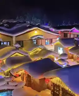 - Snow Town Night View: At night, the night view of China Snow Town is very beautiful, with light-decorated village houses and forests.