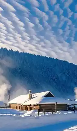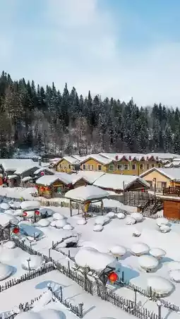 In winter, stepping into Xuexiang is like entering a fairy tale world made of ice and snow. The snow falls like soft clouds, gently covering the roofs, trees, and fences. The wooden houses are scattered, and the smoke rising from the chimneys adds a touch of warmth to this cold world.