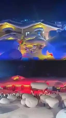 4⃣Ice Lantern Square🧊: At night, the ice lanterns🧊 light up, illuminating the entire square❤️