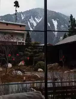 Stay in the starry sky private hot spring family room, the terrace looks up to the snow-capped mountains