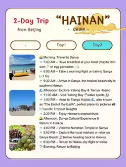 Hainan is a tropical paradise in the south of China, famous for its stunning beaches, lush landscapes, and the worldโs largest Guanyin statue ๐๏ธ๐. Ready for a relaxing getaway? This easy 2-day itinerary from Beijing will help you explore Hainan and experience all the must-see spotsโwith plenty of sunshine and sea breeze! ๐