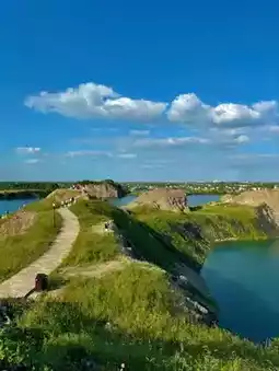 - Now a "Blue Lagoon" with turquoise waters, surrounded by steep cliffs from past mining, creating a dramatic landscape.