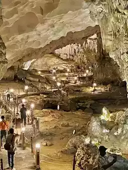 Sung Sot Cave is a cave in a limestone massif. The path to the cave is through the forest greenery; you must climb 50 stone steps and then descend 10 stone steps to reach the entrance.