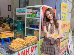 Bánh mỳ que (French bread, 3 baht each, filled with minced pork liver).