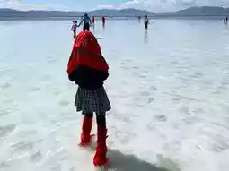 Checking the weather is essential to capture the sky's reflections in the vast salt lake.