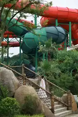 The hotel's unique architecture is a highlight—💦 floating boat houses, 🍄 mushroom villas with slides, and 🏰 fairytale-like lakeside castles—even if you're not staying, the photo ops are incredible!