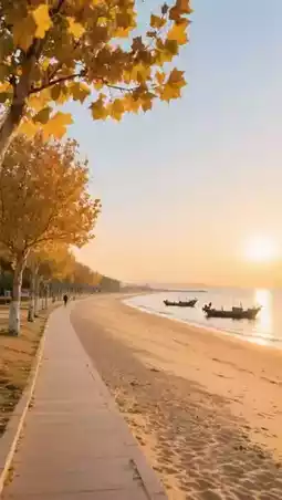 Even in autumn, the beach remains wide and clean. Stroll at dusk and watch the sunset cast golden light on the sand. The plane trees and ginkgo gradually turn yellow, the sea breeze is cool but not biting, and fishing boats silhouetted in the distance create a gentle scene that’s hard to leave.