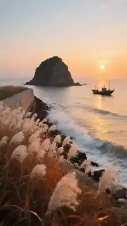 Though you cannot land on the island, from the seaside of Xin’an Town, Qianliyan Island appears faintly in the autumn mist. Large reed beds sway with the wind, mingling with crashing waves to form a vast, desolate painting. At dusk, the silhouettes are striking.