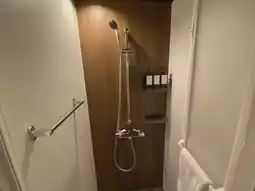 The interior of the room is simple and the bath only has a shower.