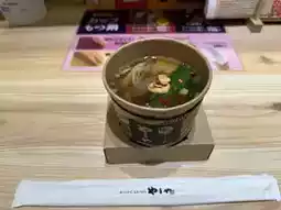 "YAMAYA BASE (Myung store)" is located in the Myung commercial facility in the Hakata Station building, where you can casually eat cup motsunabe at the counter.