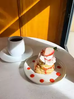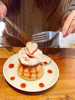 This time I went for the strawberry pie with the cute whipped cream that looks like frills✨First of all, I struggled to choose a seat🤣I'm usually alone and only sit at the counter, but this time I was with a friend so we went to a larger table