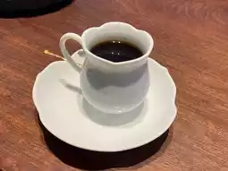 The coffee is home-roasted, and the coffee cups are designed with a camellia flower motif♡