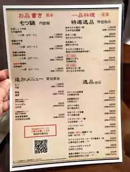 Motsunabe Rokkasya has only one branch, located near Hakata Station. They offer individual servings of motsunabe (beef intestine hot pot) with four flavor options: Kyushu soy sauce, sesame miso, spicy miso, and numbing spicy miso.