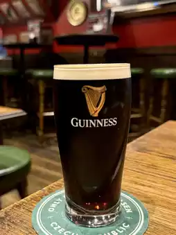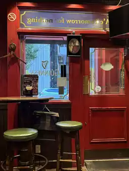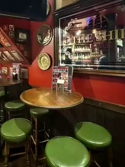 The inside of the restaurant was bright, with a red-based color scheme that gave it an authentic Irish atmosphere