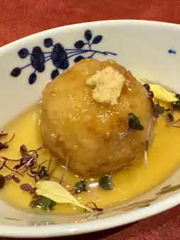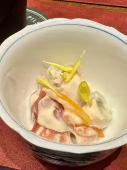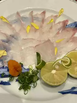 ◻︎Sashimi: "Karatsu wild red snapper thin slices" (homemade ponzu sauce/simmered sake)