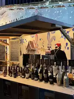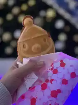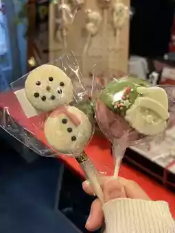 There are 30 stores, and you can enjoy various products and foods such as hot wine, swirling sausages, and snow globes.
