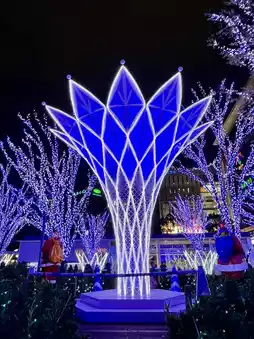 Winter evenings in Hakata are magical — the station area glows with dazzling illumination lights, drawing crowds of people enjoying the festive atmosphere. The Christmas Market adds even more warmth to the season, with the scent of mulled wine and cheerful music filling the air.