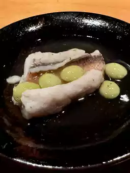 Tilefish with fresh ginkgo nuts, rice crackers, and real wasabi