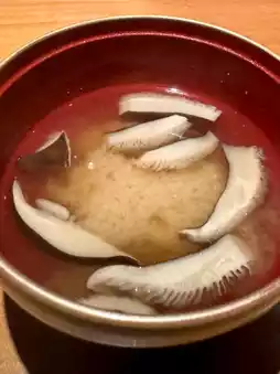 - Simmered matsutake mushrooms and garland chrysanthemum with green yuzu
