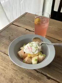 I ate the fruit sandwich, and it was so delicious with the refreshing and sweet fruit and whipped cream between the soft and chewy toasted bread!