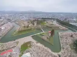 You can see the cherry blossoms in full bloom along with the garden in Goryokaku Star Fort.
