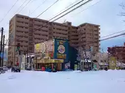 At the intersection right in front of Goryokaku Tower, there is Lucky Pierrot