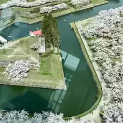 From the top of Goryokaku Tower, Hakodate's spring beauty unfolded like a canvas! Cherry blossoms bloomed in every direction, painting the star-shaped fort with vibrant hues.