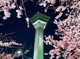 2. Cherry Blossom Trail: Capture the trail under the cherry blossom trees during the day and blend in with the pedestrians to add a sense of life.