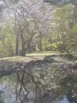 I particularly like that small pond. I sat beside it and quietly watched the flowers. There happened to be a breeze, and a gust of cherry blossoms floated down. The shadows of the trees were reflected on the water surface. The whole scene was super dreamy, and I couldn't stop taking pictures with my phone.