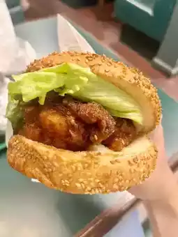 Lucky Pierrot is renowned for its delicious burgers, having been ranked #1 in a Japanese survey. We ordered the most popular Chinese Chicken Burger. For less than 500 yen, it contains four large chunks of orange chicken. Since Japanese burgers are typically breast fillet burgers, this is a rare opportunity to enjoy chicken thighs, a dish familiar to Korean palates.