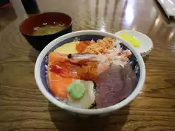 The second restaurant is "Asaichi Shokudo Nibankan", where you can enjoy a seafood bowl topped with lots of seafood such as salmon, salmon roe, shrimp, tuna, scallops, and crab for only 500 yen! It's great value for money and I was very satisfied!
