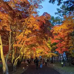 In addition to being able to enter and view during the day, the night lighting after sunset is also worth seeing. The lights are set against the red leaves of the trees emerging in the dark, creating a dreamy scene🍁😍