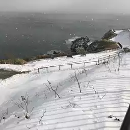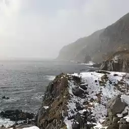 Cape Tachimachi has beautiful views over the Tsugaru Strait. There is a small lookout point with equally stunning views down the coast. This cape is part of Hanamasu Park.