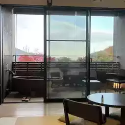 The autumn leaves can be seen from the open-air bath, which was very beautiful.