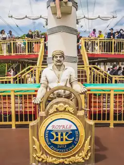 Last time I talked about my day one day Pirate King👑, this time let me introduce my sightseeing ship🚢, currently regularly cruising three pirate ships, I sit on the red and white Royal II Southern European Royal Sun🌞, is a reference to the 18th century French Navy flagship: Royal Louis🇫🇷. Regardless of the appearance, the interior and exterior of the hull, all try to recreate the style of the past. It made its maiden voyage in 2013 and is the latest of three pirate ships.