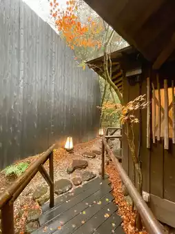 The most surprising thing is that after taking a bath, you can also enjoy the red leaves in the garden, which is a bonus! 🍁